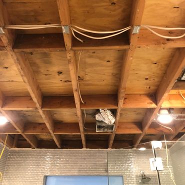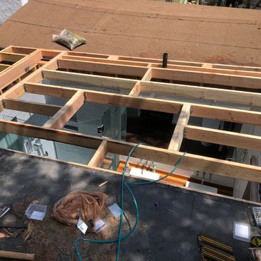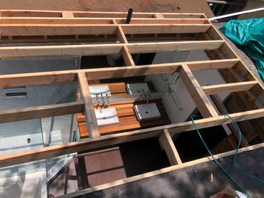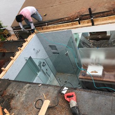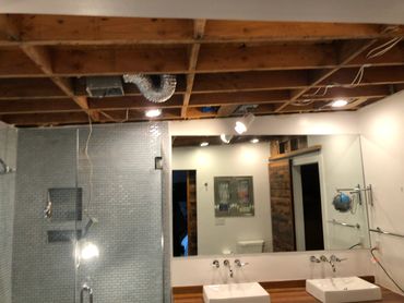 A precise structural intervention designed to elevate space and light. This bathroom remodel involved raising the roofline to increase ceiling height and bring in natural light through carefully placed skylights. The execution required exacting cuts and structural recalibration—balancing spatial ambition with construction discipline.